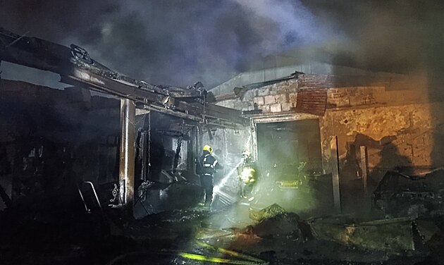 Likvidace požáru autoservisu v Klimkovicích u Ostravy (26. září 2025)