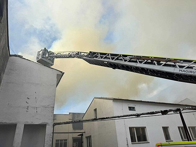Hoří střecha průmyslové haly ve Frýdlantu nad Ostravicí. Hasiči vyhlásili třetí stupeň poplachu. (31. prosince 2024)