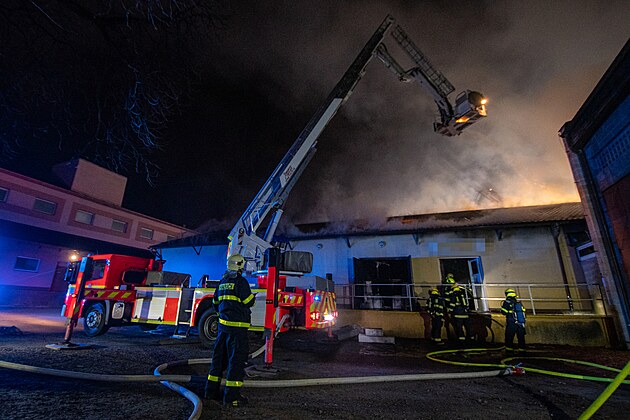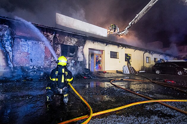 Noční požár haly v Ostravě-Přívoze likvidovalo jedenáct hasičských jednotek.
