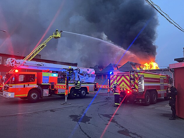 V Ostravě - Třebovicich zasahují hasiči u požáru odpadu uvnitř jedné z hal. (22. srpna 2025)