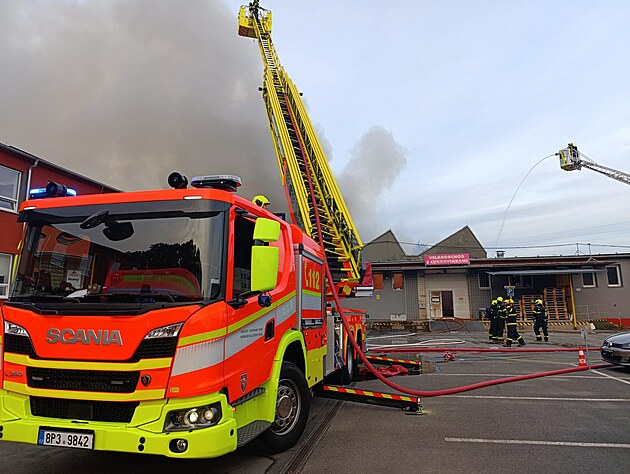 V Ostravě - Třebovicich zasahují hasiči u požáru odpadu uvnitř jedné z hal. (22. srpna 2025)