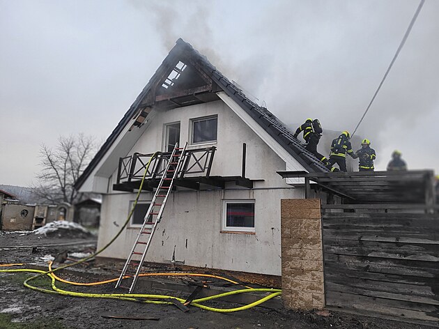 Požár střechy rodinného domu v Krnově, škoda činí dva miliony korun. (12. prosince 2024)