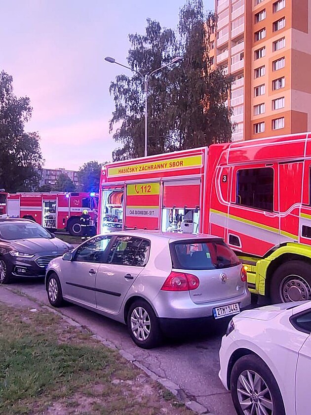 Likvidace požáru v panelovém domě v Ostravě - Porubě (23. května 2025)