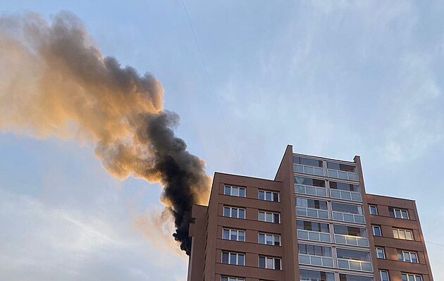 Požár v nejvyšším patře panelového domu v Ostravě - Porubě (23. května 2025)