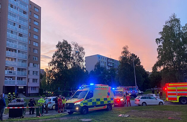 Požár v nejvyšším patře panelového domu v Ostravě - Porubě (23. května 2025)