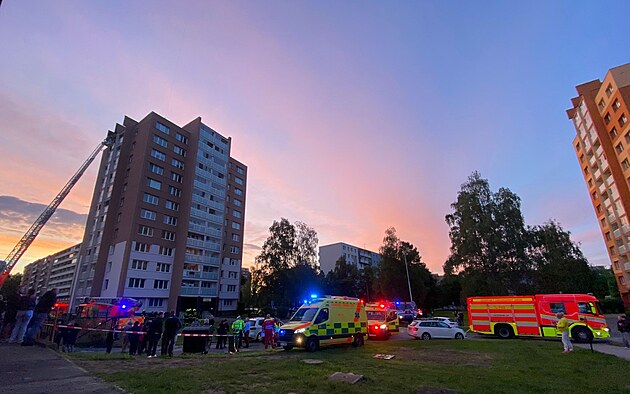 Požár v nejvyšším patře panelového domu v Ostravě - Porubě (23. května 2025)
