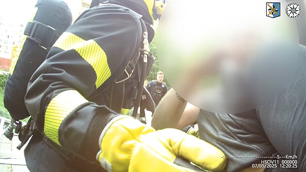 Jakmile jejich policejní kolegové vběhli do domu, slyšeli muže volajícího o pomoc. „Seděl na chodbě na invalidním vozíku, a to dvě patra nad zasaženým bytem. Toho policisté snesli dolů a předali záchranářům,“ uvedla Michalíková.