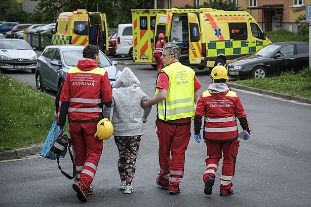 V sedmém podlaží panelového domu v Ostravě - Dubině zřejmě vybuchla elektrokoloběžka a byt poté zachvátil požár. Desítky lidí se nadýchaly kouře, všichni obyvatelé domu se museli evakuovat. (7. května 2025)