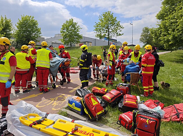 Záchranáři zasahovali u požáru panelového domu v Ostravě - Dubině, kde ošetřili desítky lidí. (7. května 2025)