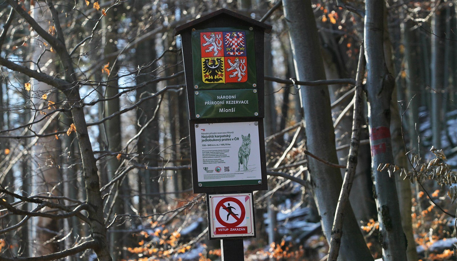 Stezka k pralesu Mionší je nyní pro veřejnost uzavřena. V oblasti není kvůli padajícím uschlým stromům bezpečno, a navíc tam zahnízdil vzácný tetřev hlušec.