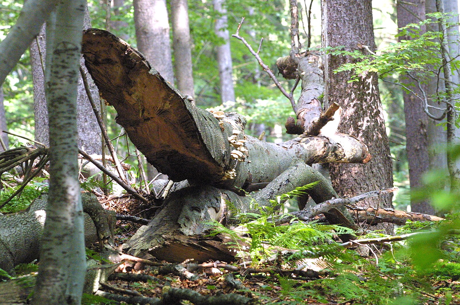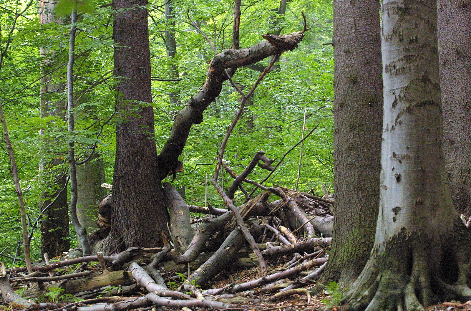 Pohled z naučné stezky do jedlo-bukového lesa pralesu Mionší.