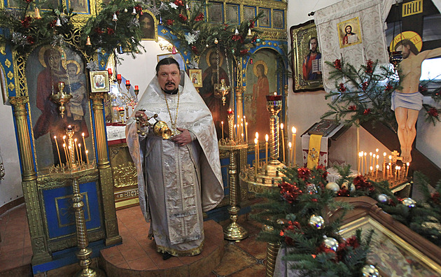 Na mši bylo plno. Kdo se nevešel dovnitř, stál venku. Pro římskokatolickou církev končí Vánoce Třemi králi, tedy 6. lednem. Pravoslavní věřící se ale řídí juliánským kalendářem, který je oproti našemu posunut o třináct dní a podle kterého vánoční svátky teprve začínají. Končí pak 19. ledna.