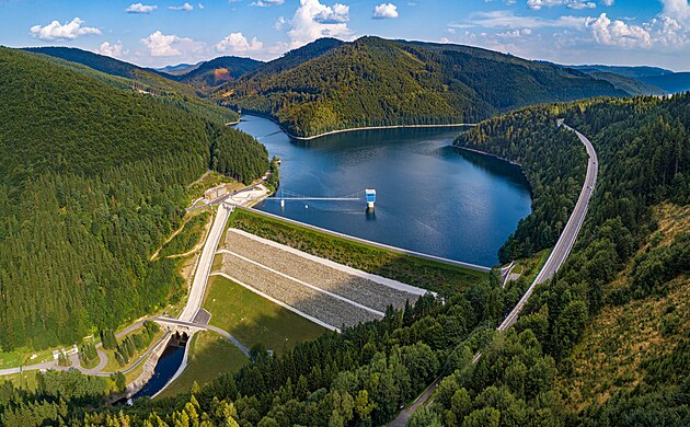 Hráz beskydské údolní přehrady Šance (2. dubna 2024)
