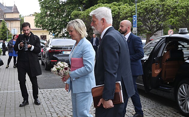 Prezident Petr Pavel první den návštěvy Moravskoslezského kraje navštívil s manželkou Evou hejtmanství Moravskoslezského kreje, kde je přivítal hejtman Josef Bělica (26. květen 2025).