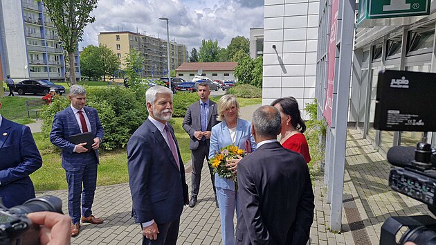Prezident Petr Pavel první den návštěvy Moravskoslezského kraje navštívil s manželkou Evou hejtmanství Moravskoslezského kreje, kde je přivítal hejtman Josef Bělica (26. květen 2025).