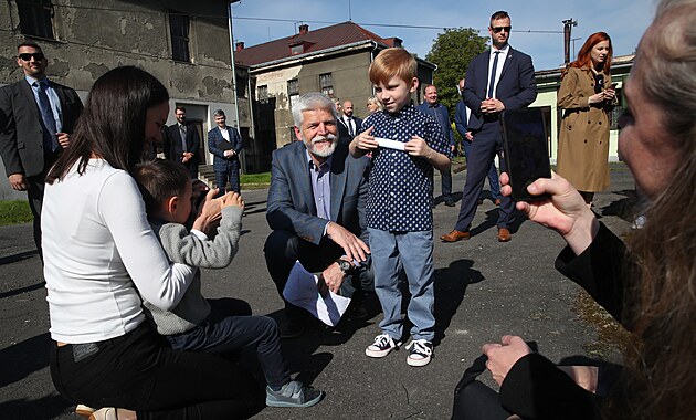 Prezident Petr Pavel s chotí Evou na návštěvě azylového domu Nová šance v Ostravě – Koblově, kde jsou dílny pro bývalé vězně a lidi bez domova. Setkal se i s dětmi zaměstnanců. (27. května 2025)