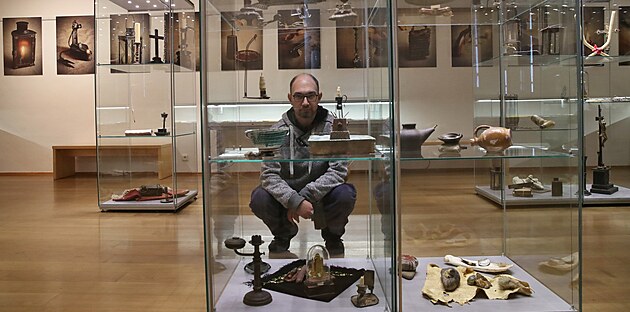 Do historie svícení, než se začala využívat elektřina, zavede výstava v Centru tradičních technologií Příbor nazvaná Tma jako v pytli. Na snímku vedoucí muzea Václav Michalička.