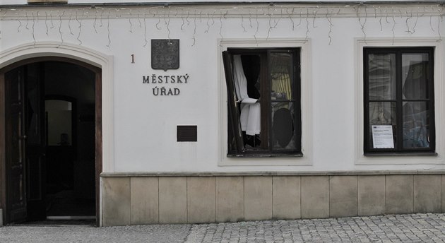 V přízemí budovy byla po výbuchu vytlučená okna.