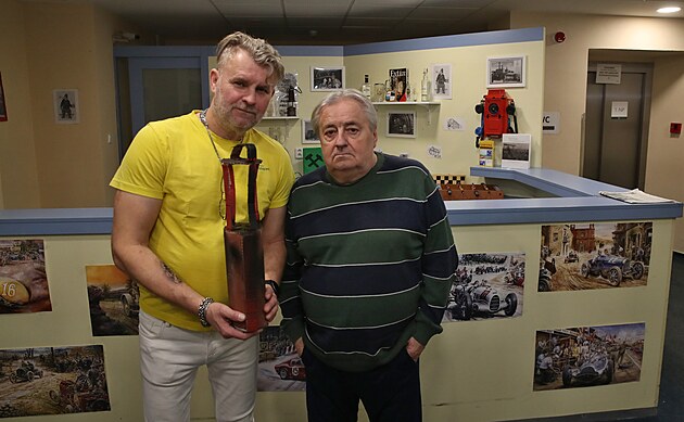Aktivizační pracovník Domova Alzheimer Darkov v Karviné Štefan Rawek (vlevo) a klient Milan Kubica při reminiscenční terapii.