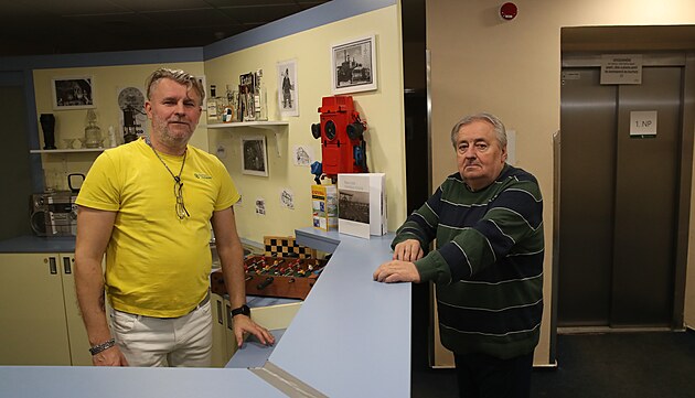 Aktivizační pracovník Domova Alzheimer Darkov v Karviné Štefan Rawek (vlevo) a klient Milan Kubica při reminiscenční terapii.