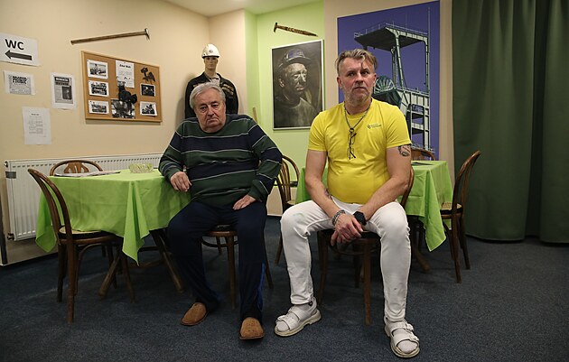 Aktivizační pracovník Domova Alzheimer Darkov v Karviné Štefan Rawek a klient Milan Kubica (vlevo) při reminiscenční terapii.