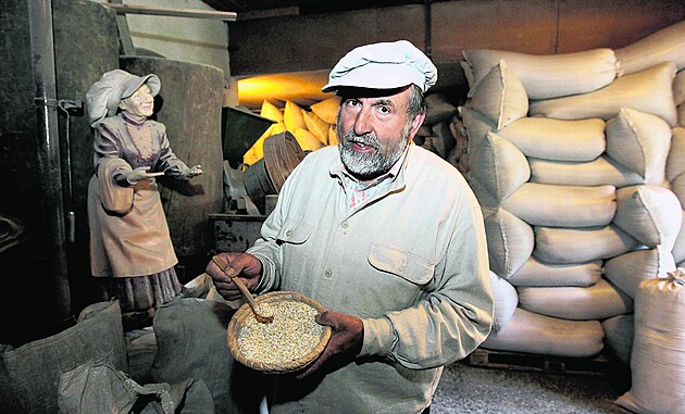 To byl náš nápad, protože právě on to byl, kdo mlýn hodně povznesl a začal se mu věnovat jako živnost. Nejdříve trochu hudroval, že bude na každém sáčku křupek, ale myslíme si, že mu to nakonec určitě nevadí. Už je v důchodu a žije asi patnáct kilometrů daleko, kde se věnuje i svému koníčku – malování. Ale nebojte, nejméně dvakrát týdně přijíždí a sleduje, jak si vedeme. Kontrola musí být.
