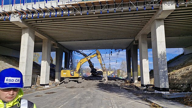 Demolice části mostu na Rudné ulici v Ostravě. (27. října 2025)