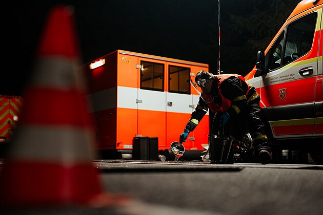 Na hraničních přechodech se Slovenskem, Mosty u Jablunkova – Svrčinovec a Bílá – Bumbálka, postavili hasiči dekontaminační stanoviště. (26. března 2025)