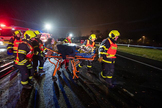 Na dálnici D56 u Paskova se srazily nákladní vůz, dodávka a pět osobních aut, provoz je uzavřen a na místě zasahují všechny složky IZS. (11. prosince 2025)