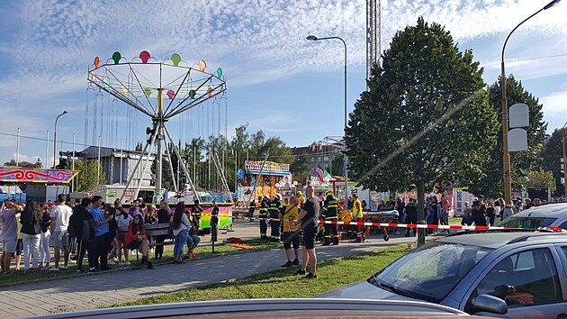 Na Havířovských slavnostech spadl řetízkový kolotoč, na místě zasahují všechny složky IZS. (3. září 2022)