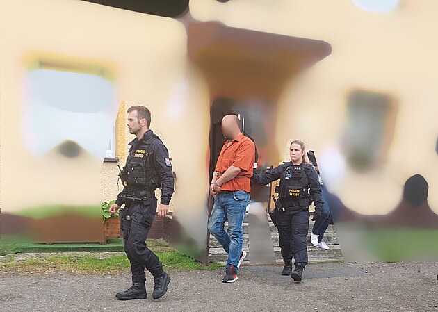 Policisté vedou muže obviněného z uškrcení 83leté ženy v Karviné. (4. června 2024)