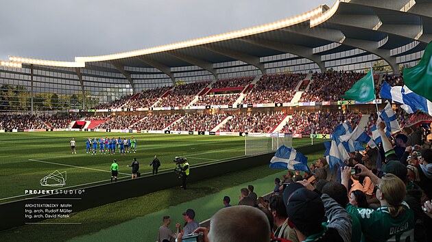 Architekti PROJEKTSTUDIA David Kotek a Rudolf Müller navrhli ověřovací studii na kapacitu stadionu na Bazalech. Nový fotbalový stánek by měl pojmout 15 tisíc diváků.