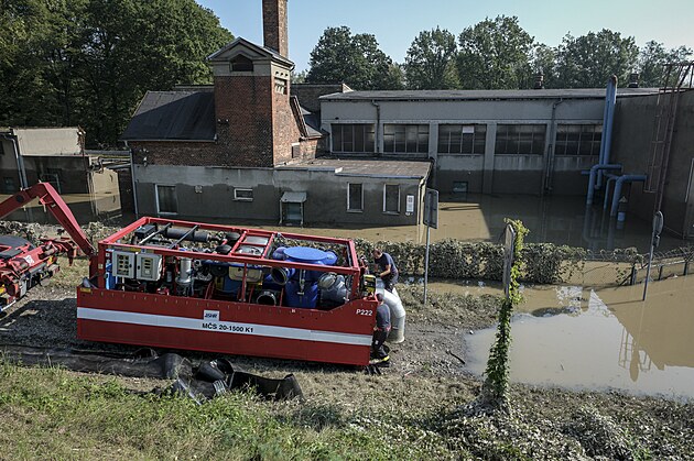 Čerpání vody ze zaplavené ostravské části Nová Ves. (24. září 2024)