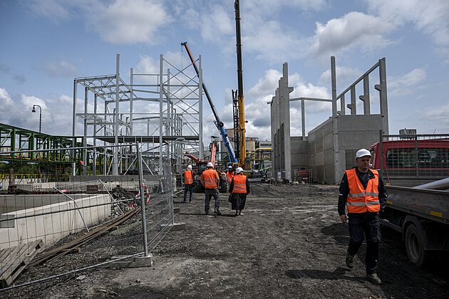 Stavba teplárenského bloku na spalování biomasy v Dětmarovicích na Karvinsku pokračuje. (11. června 2025)