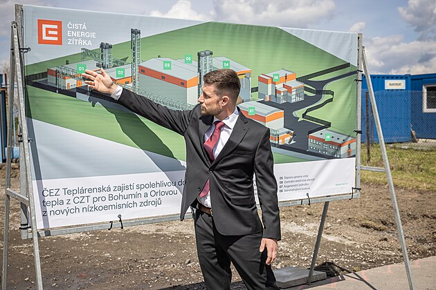 Elektrárna v Dětmarovicích na Karvinsku končí s černým uhlím. Dodávky elektřiny, ale i tepla a teplé vody pro Bohumín a Orlovou od příští sezony zajistí z čistších zdrojů. Technický a investiční ředitel ČEZ Teplárenské Radim Seidler ukazuje mapu vznikajících teplárenských zdrojů.