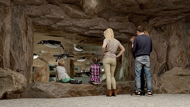 Vizualizace plánovaného vodního areálu v ostravské zoologické zahradě, který osídlí hlavně tučňáci. (29. dubna 2024)