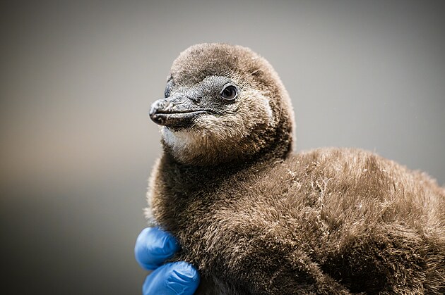Mládě tučňáka brýlového odchované párem samců