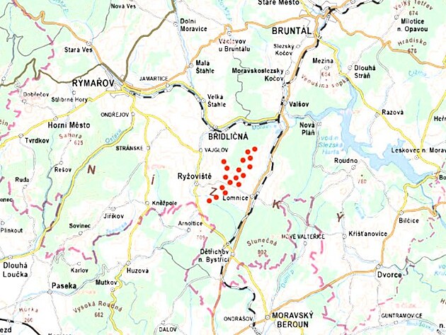 Lomnice – umístění plánovaných turbín v mapě a katastrální mapě