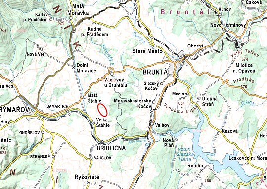 Velká Štáhle – umístění plánovaných turbín v mapě a katastrální mapě