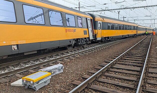 Vykolejení dvou vagónů soupravy RegioJet v prostoru ostravského Hlavního nádraží (2. dubna 2025)