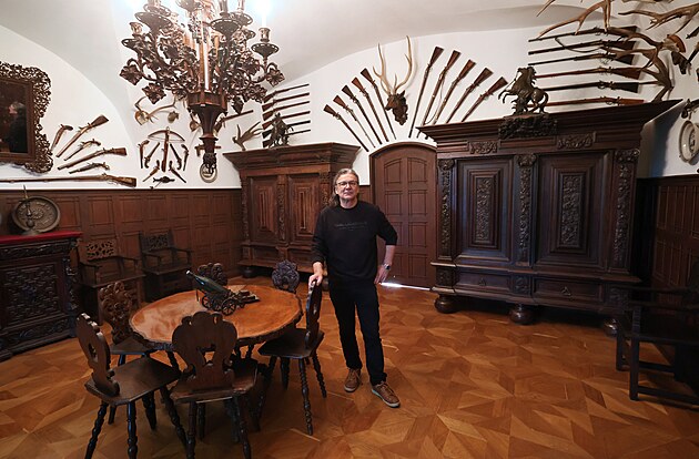 Unikátem je také dřevěný dvanáctiramenný novogotický lustr Lichnovských.