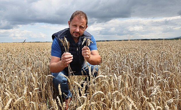 Petr Klečka z farmy Luční Dvůr v Bartošovicích se obává o kvalitu pšenice, kterou kvůli vlhku zatím nesklidil.
