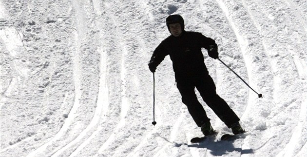 Lyžování v jarním počasí v beskydském areálu Bílá