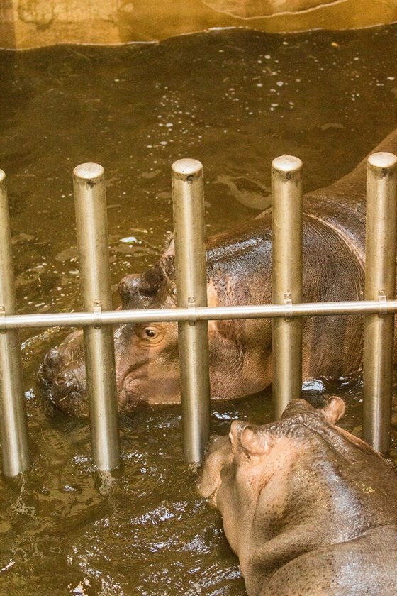 Do ostravské zoo přicestoval před nedávnem nový samec hrocha. S tamní samicí se nejprve seznamoval přes mříže. (14. října 2019)