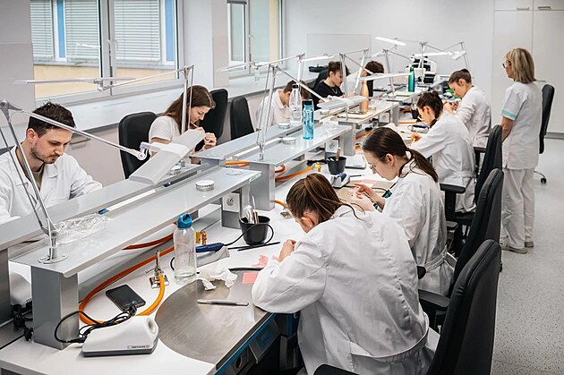 Budoucí zubaři se pod odborným dohledem a v nových laboratořích Fakultní nemocnice Ostrava učí vyrábět a posuzovat kvalitu zubních náhrad. (14. května 2025)