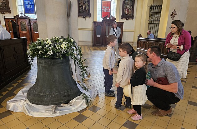 Na vrácené zvony z německé diecéze byli v Ostravě zvědaví dospělí i děti. (13. dubna 2024)