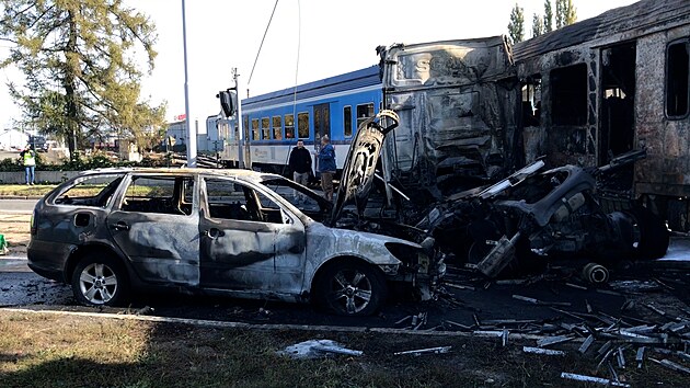 Záchranáři likvidují srážku vlaku s kamionem v Olomouci