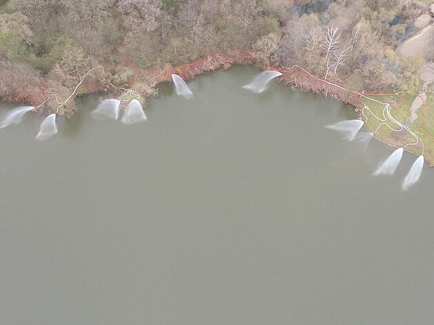 U Hustopečí nad Bečvou bojují hasiči se zesilující kontaminací vodní nádrže benzenem i speciálním zařízením, pomocí něhož stříkají nad hladinu vodu, aby se zrychlila oxidace chemikálie. (31. března 2025)