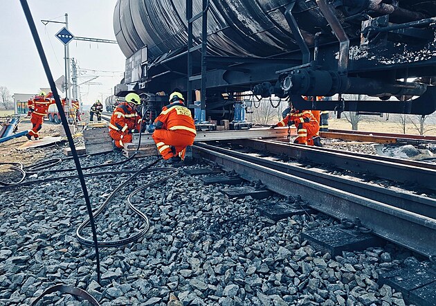 U Hustopečí nad Bečvou na Přerovsku pokračuje likvidace následků nehody a následného obřího požáru nákladního vlaku převážejícího hořlavý a toxický benzen. (4. března 2025)