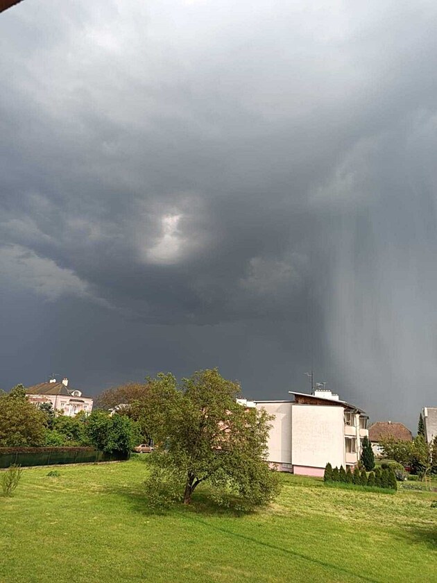 Takto zachytila blížící se bouřku ve skupině Lovci bouřek, extrémní počasí a jiné jevy Alžběta Kellerová v Brodku u Přerova. (3. května 2025)